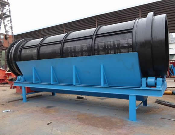 大型滾筒篩分機工作中物料從中心分離筒上端進入筒網(wǎng),在分離筒旋轉(zhuǎn)過程中,細物料自上而下通過圓環(huán)狀扁鋼組成的篩網(wǎng)間隔中得到分離,粗物料從分離筒下端排出進入粉碎機。通過變速箱式減速系統(tǒng)對設(shè)備中心分離筒實行合理旋轉(zhuǎn),中心分離筒安裝是與地平面呈傾斜狀態(tài),設(shè)備中設(shè)有板式自動清篩機構(gòu),在分離過程中,通過清篩機構(gòu)與篩體的相對運動,由清篩機構(gòu)對篩體進行連續(xù)“梳理”,使篩體在整個工作過程中始終保持清潔,不會因篩孔堵塞而影響篩分效率。