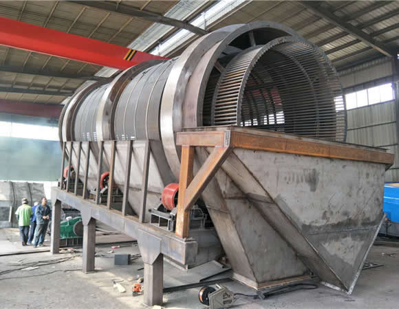 無軸石料滾筒篩、石子滾筒篩、無軸滾筒篩石機以傾斜的方式安裝在框架上。 馬達通過減速器通過聯軸器與鼓裝置連接,并且鼓裝置被驅動以繞其軸線旋轉。 當物料進入滾筒設備時,由于滾筒設備的傾斜和旋轉,石子滾筒篩子表面上的物料被轉動并滾動,從而合格的物料(篩子下方的產品)通過無軸滾筒篩石機篩子底部的排出口排出鼓的后端。 上部產品通過滾筒末端的排出口排出, 由于滾筒中物料的翻轉和滾動,可以排出卡在篩孔中的物料以防止堵塞篩孔。